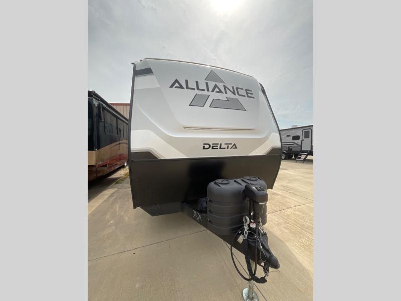 Form and function works together with every one of these Alliance RV Delta travel trailers! They are built with a walk-on roof with a seamless PVC roof covering, Mylar reinforced exterior seals, and a heated and enclosed underbelly to protect your unit in all seasons. The commercial grade vinyl flooring will be easy to clean and the oversized atrium windows throughout let in plenty of natural sunlight. With 62 cu. ft. of drop frame pass-through storage, you can bring along all of your essential camping gear plus it has USB charging for more convenience. There are many at home interior conveniences including a Bluetooth speaker, USB charging throughout, and even a pull-out kitchen trash can. Come find your favorite model today!