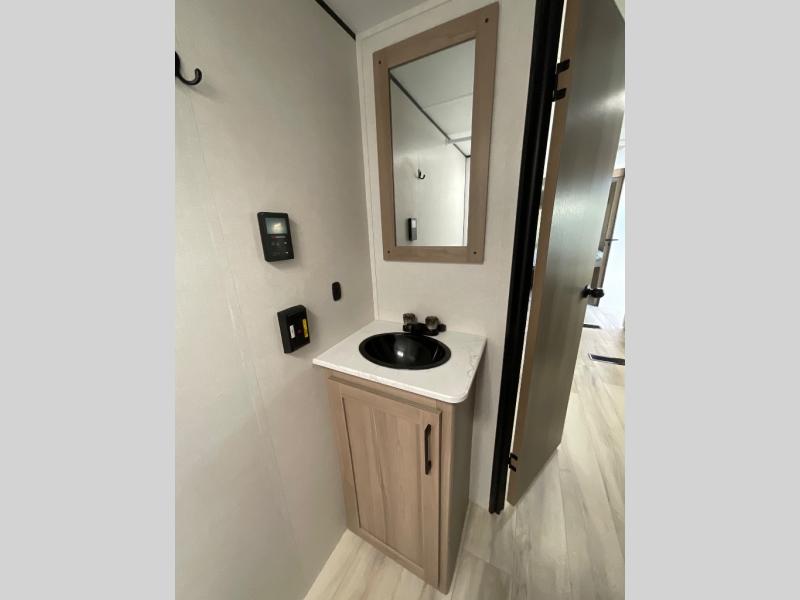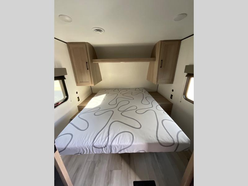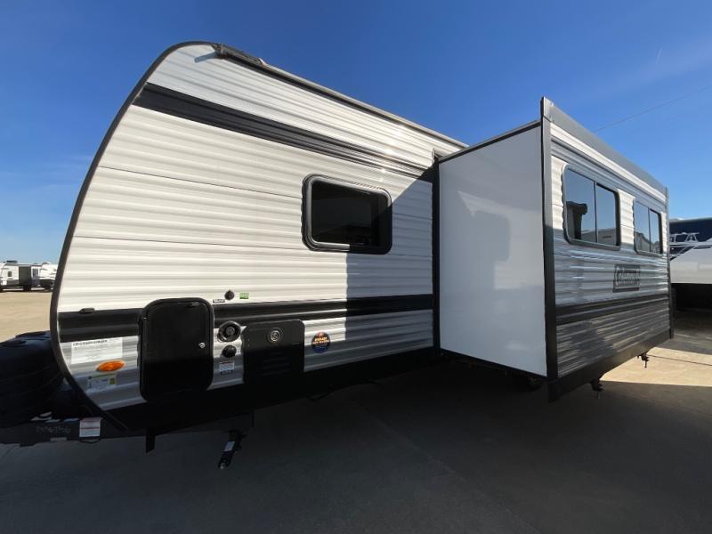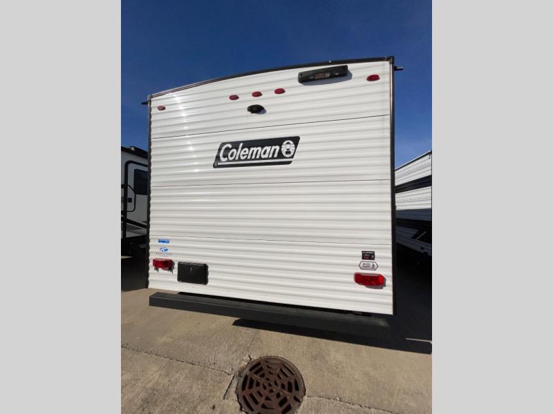 With any Coleman travel trailer, you will experience Keystone's quality throughout, plus enjoy lightweight towing to the campground or RV park. There is a walkable roof, tinted safety glass windows, and a power awning outdoors for an inviting space to relax. The friction hinge entry door is another convenience you'll appreciate, and there is Furrion backup camera prep if you want the option to make parking easier. Inside, you'll find blackout night shades, a 6' 8" ceiling height, bedside outlets, and many more comforts.